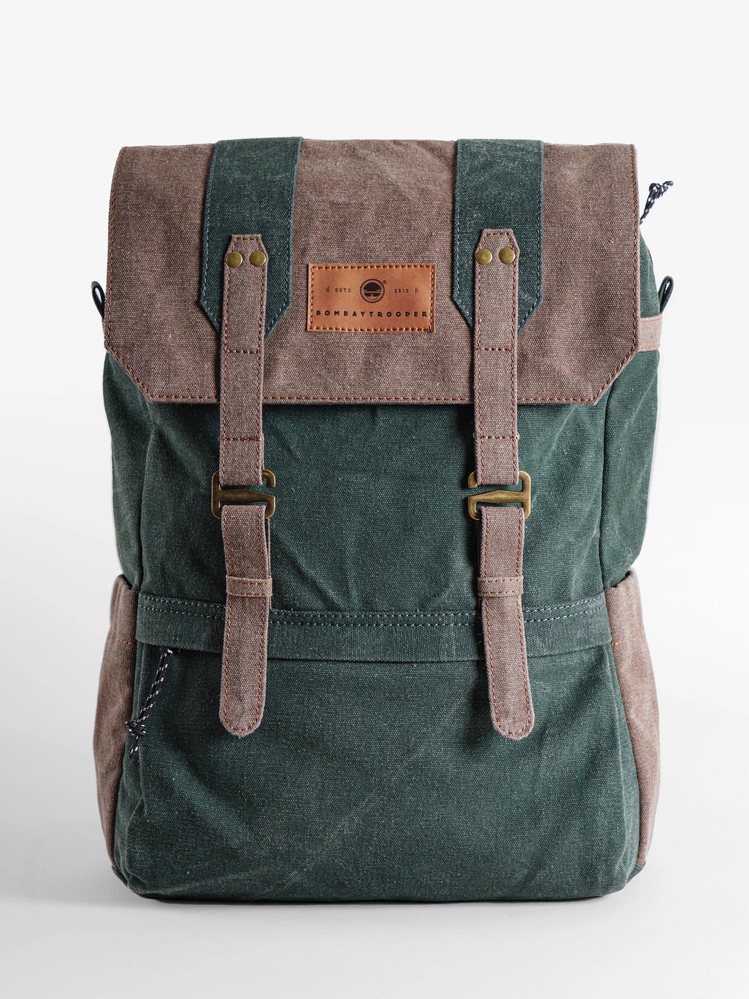 Rugged yet elegant, Foxtrot is a backpack with a presence of its own. Made from strong cotton canvas, salvaged and upcycled from old military tents and trucks, this backpack has a history of a war hero that made it.