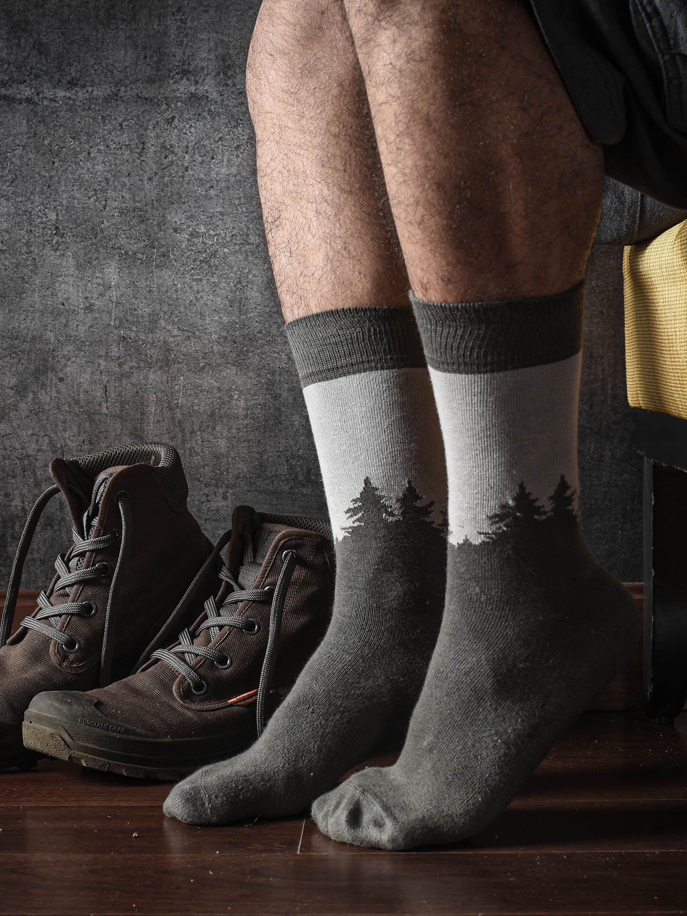 Grey Treeline ā A minimal version of the pine forest because sometimes simple monochrome socks is what rocks your boots.