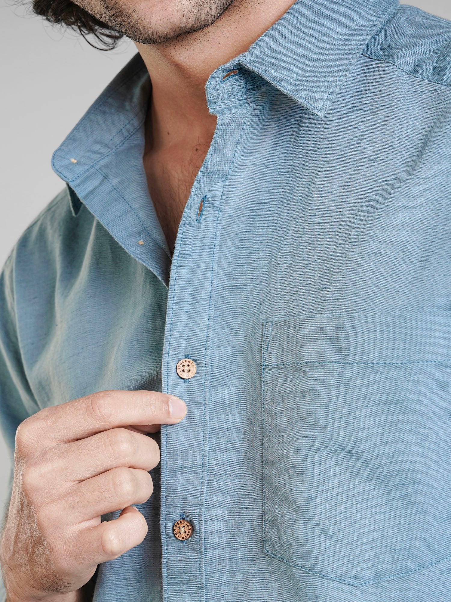 -70%Pool Blue Premium Linen Shirt—